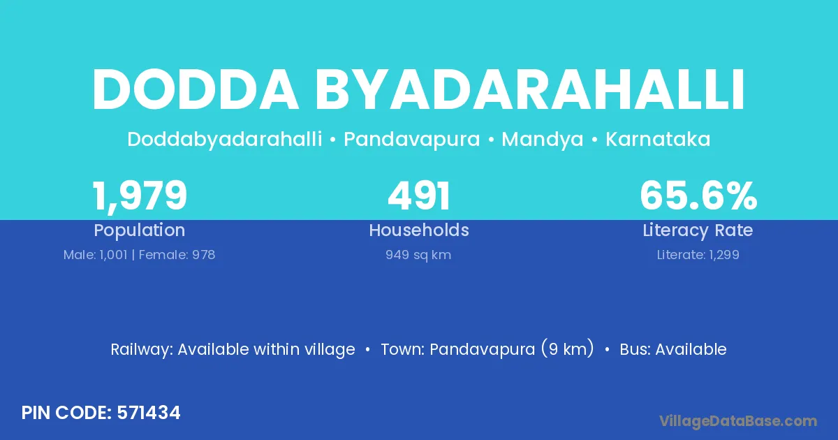 Pandavapura (9 km) is the nearest town to Dodda Byadarahalli village for major economic activities and is located approximately 9 km away.