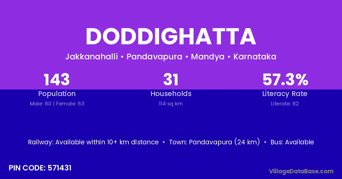 Pandavapura (24 km) is the nearest town to Doddighatta village for major economic activities and is located approximately 24 km away.
