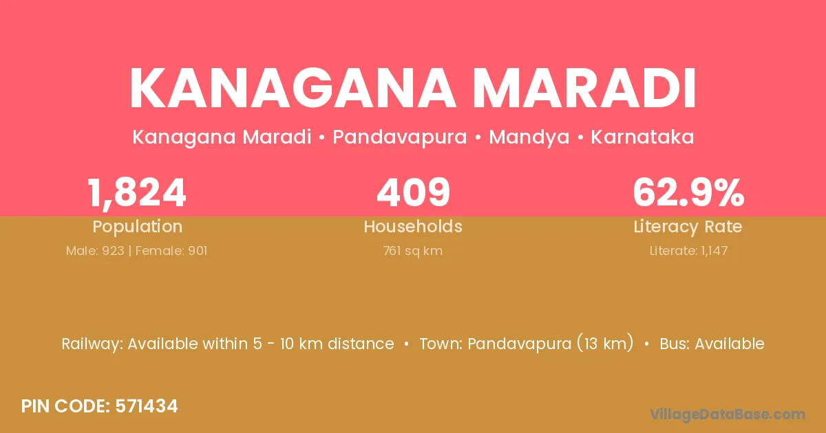 Pandavapura (13 km) is the nearest town to Kanagana Maradi village for major economic activities and is located approximately 13 km away.