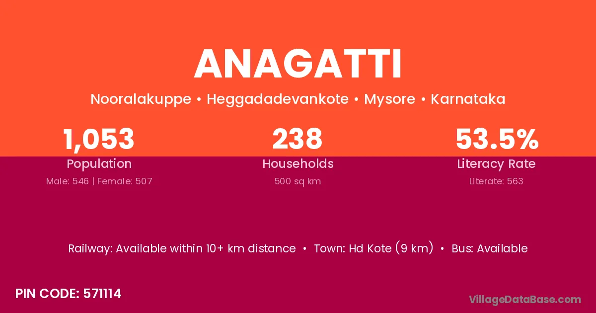Anagatti village has a total population of 1,053 people, of which 546 are males and 507 are females.