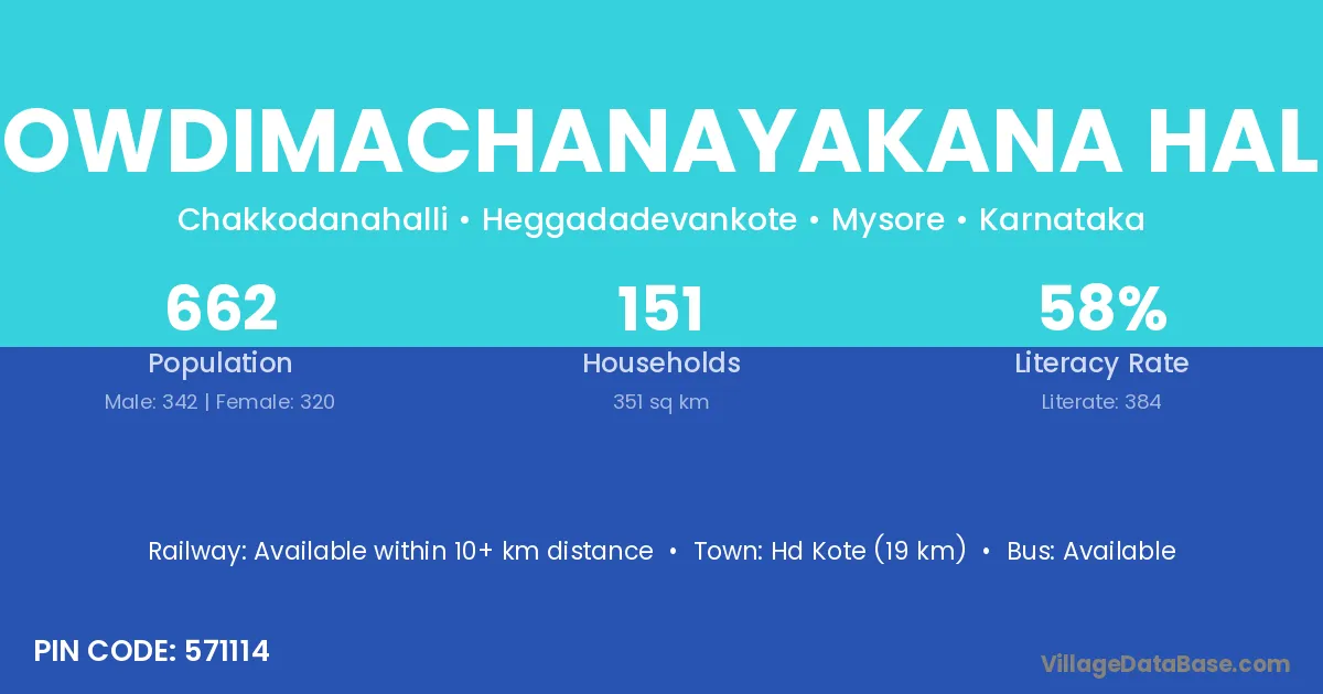 Hd Kote (19 km) is the nearest town to Gowdimachanayakana Halli village for major economic activities and is located approximately 19 km away.