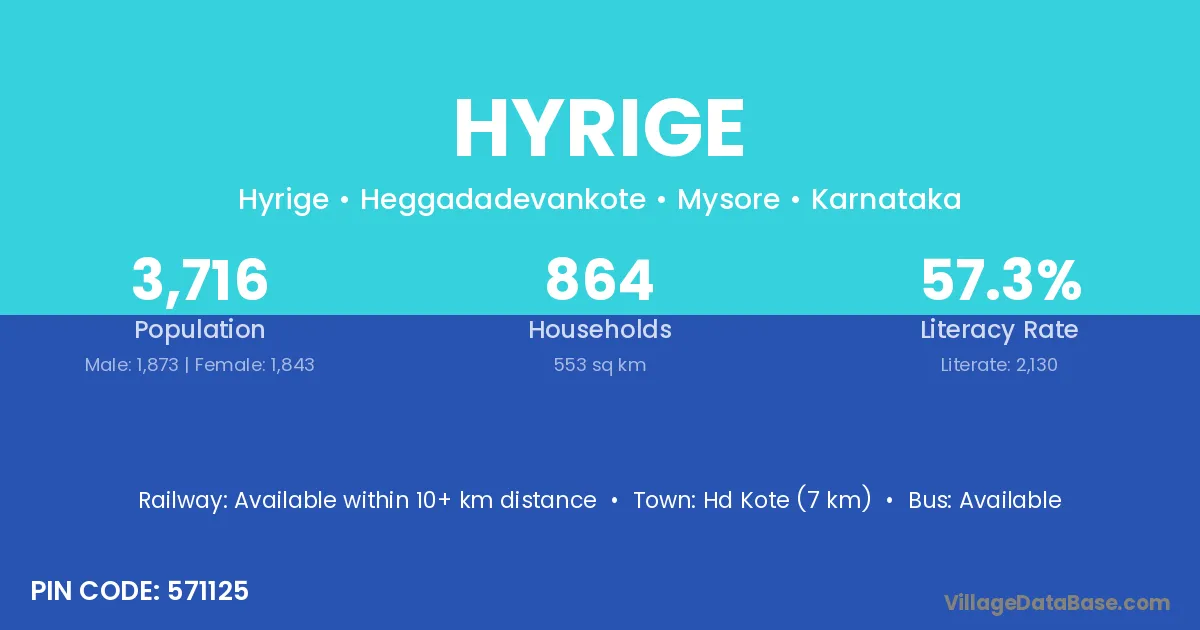 Hd Kote (7 km) is the nearest town to Hyrige village for major economic activities and is located approximately 7 km away.