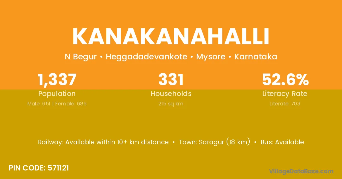 Saragur (18 km) is the nearest town to Kanakanahalli village for major economic activities and is located approximately 18 km away.