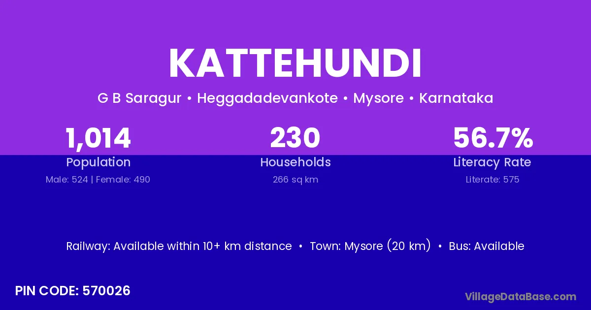 According to Census 2011 information, the village code of Kattehundi village is 570026.