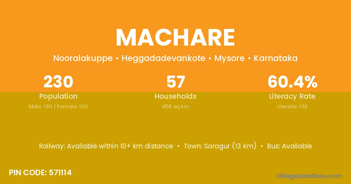 Machare village has a total population of 230 people, of which 130 are males and 100 are females.