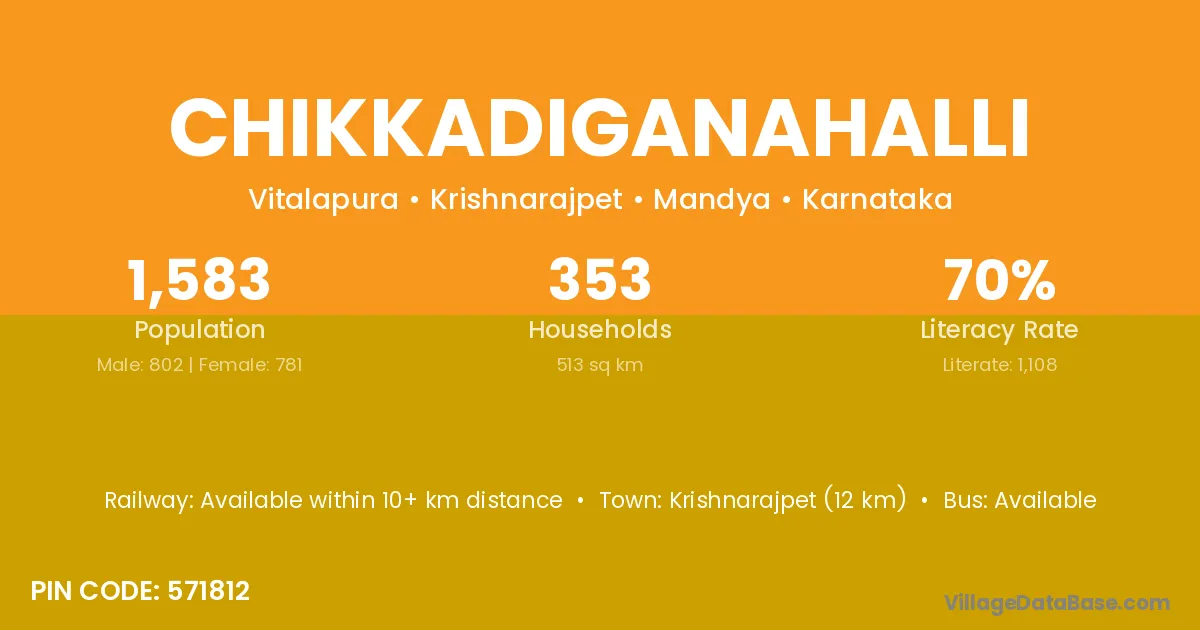 K.r.nagara (3 km) is the nearest town to Chikkadiganahalli village for major economic activities and is located approximately 3 km away.