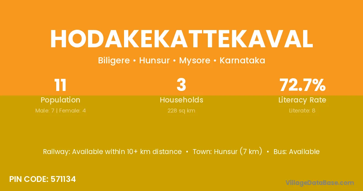 Hunsur (7 km) is the nearest town to Hodakekattekaval village for major economic activities and is located approximately 7 km away.