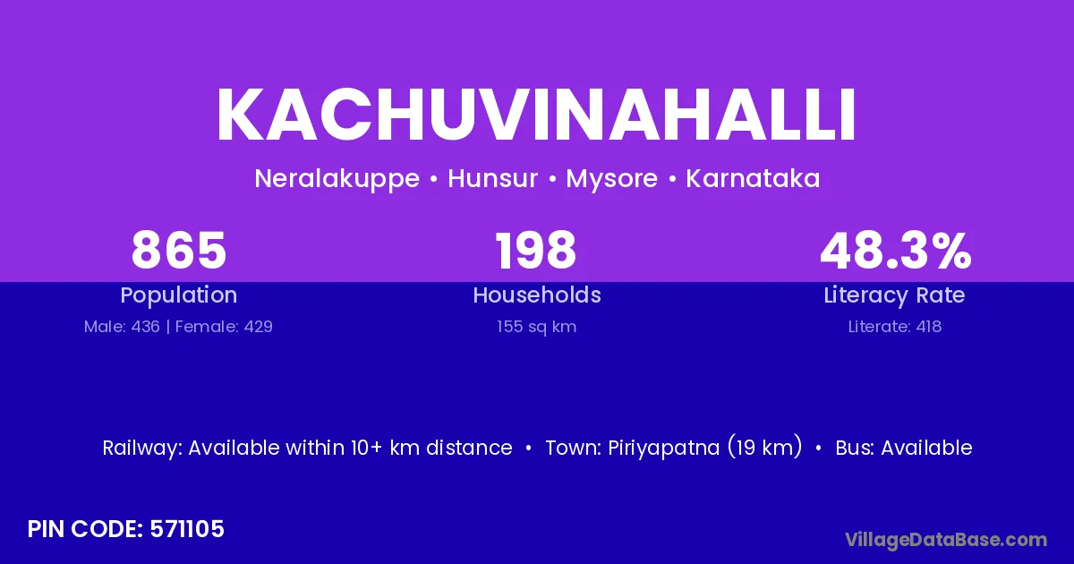 Piriyapatna (19 km) is the nearest town to Kachuvinahalli village for major economic activities and is located approximately 19 km away.