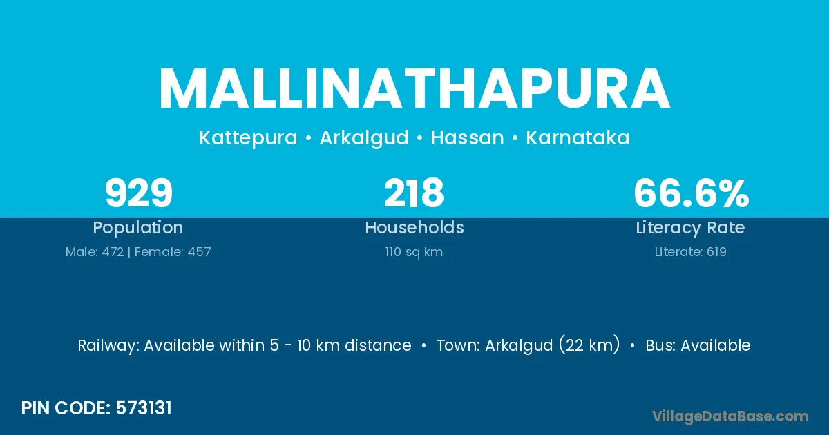 Krishnarajanagara (11 km) is the nearest town to Mallinathapura village for major economic activities and is located approximately 11 km away.