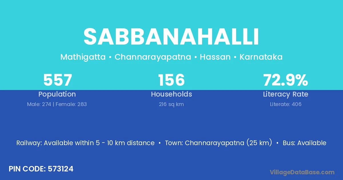 Krishnarajanagara (16 km) is the nearest town to Sabbanahalli village for major economic activities and is located approximately 16 km away.