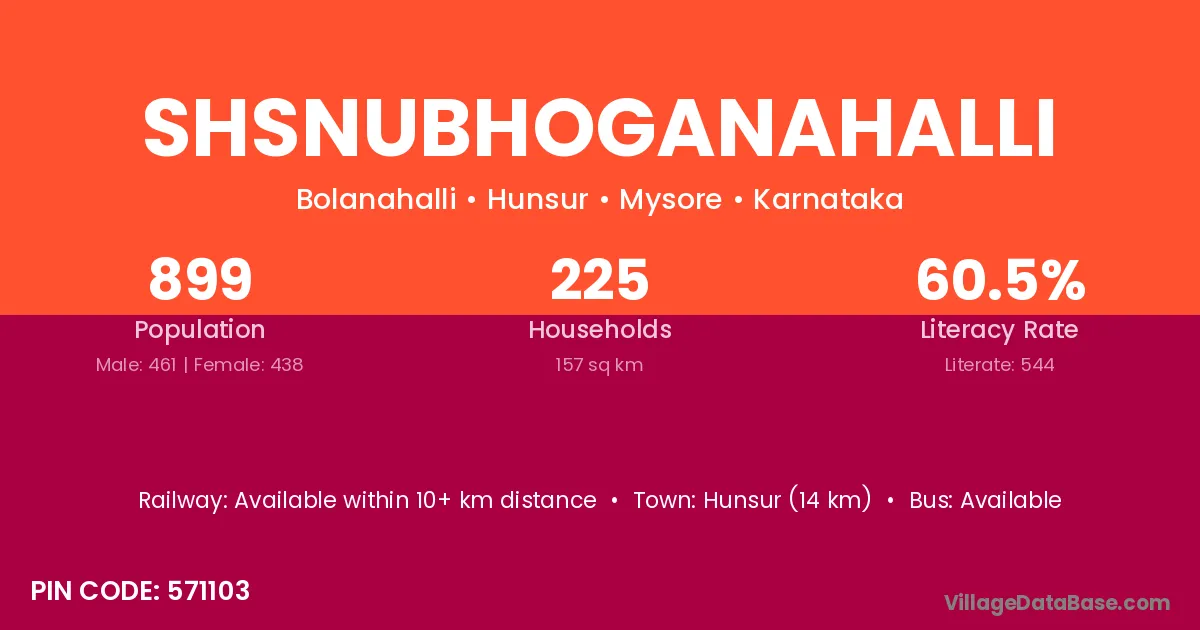 Shsnubhoganahalli village has a total population of 899 people, of which 461 are males and 438 are females.