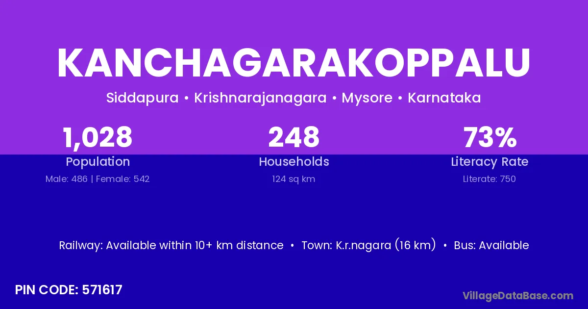 Kanchagarakoppalu village has a total population of 1,028 people, of which 486 are males and 542 are females.