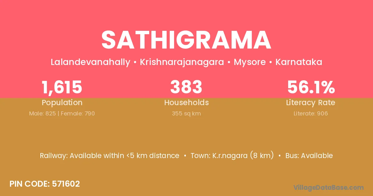 According to Census 2011 information, the village code of Sathigrama village is 571602.