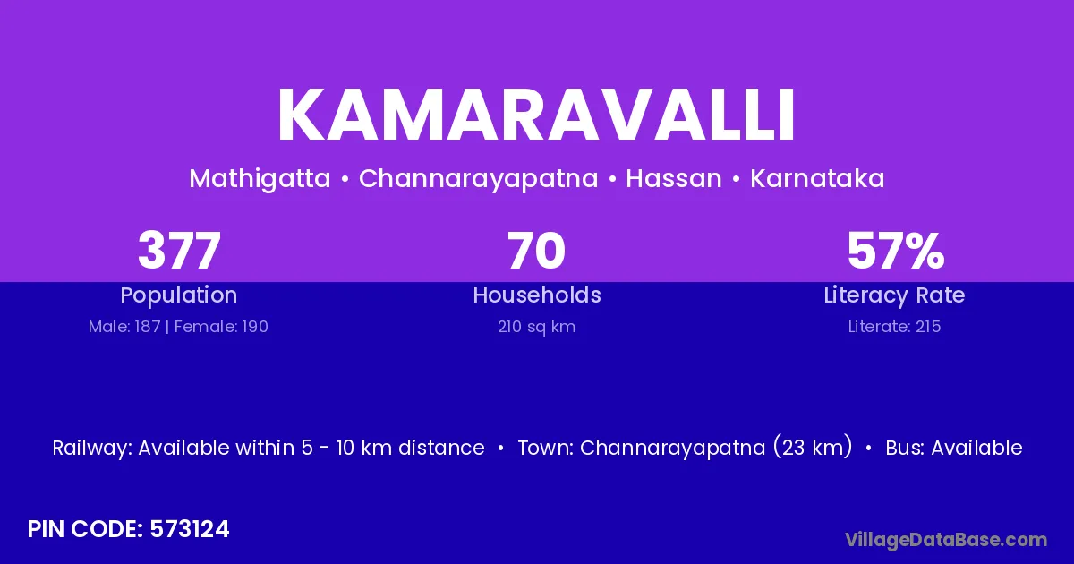 According to Census 2011 information, the village code of Kamaravalli village is 570026.