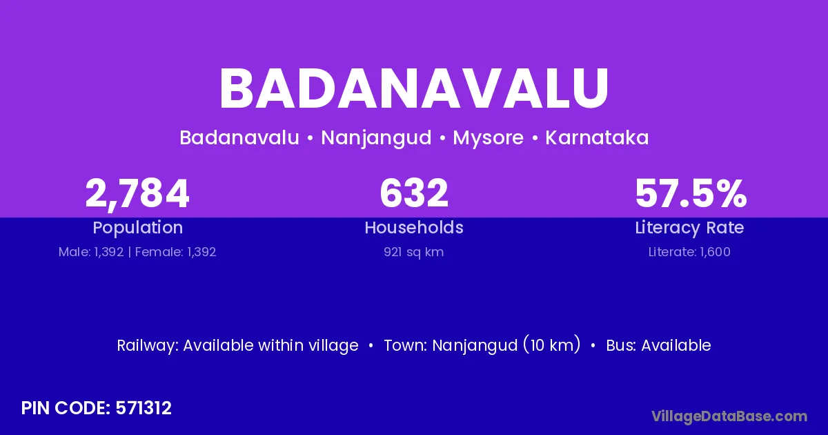Nanjangud (10 km) is the nearest town to Badanavalu village for major economic activities and is located approximately 10 km away.
