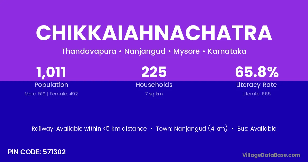Nanjangud (4 km) is the nearest town to Chikkaiahnachatra village for major economic activities and is located approximately 4 km away.