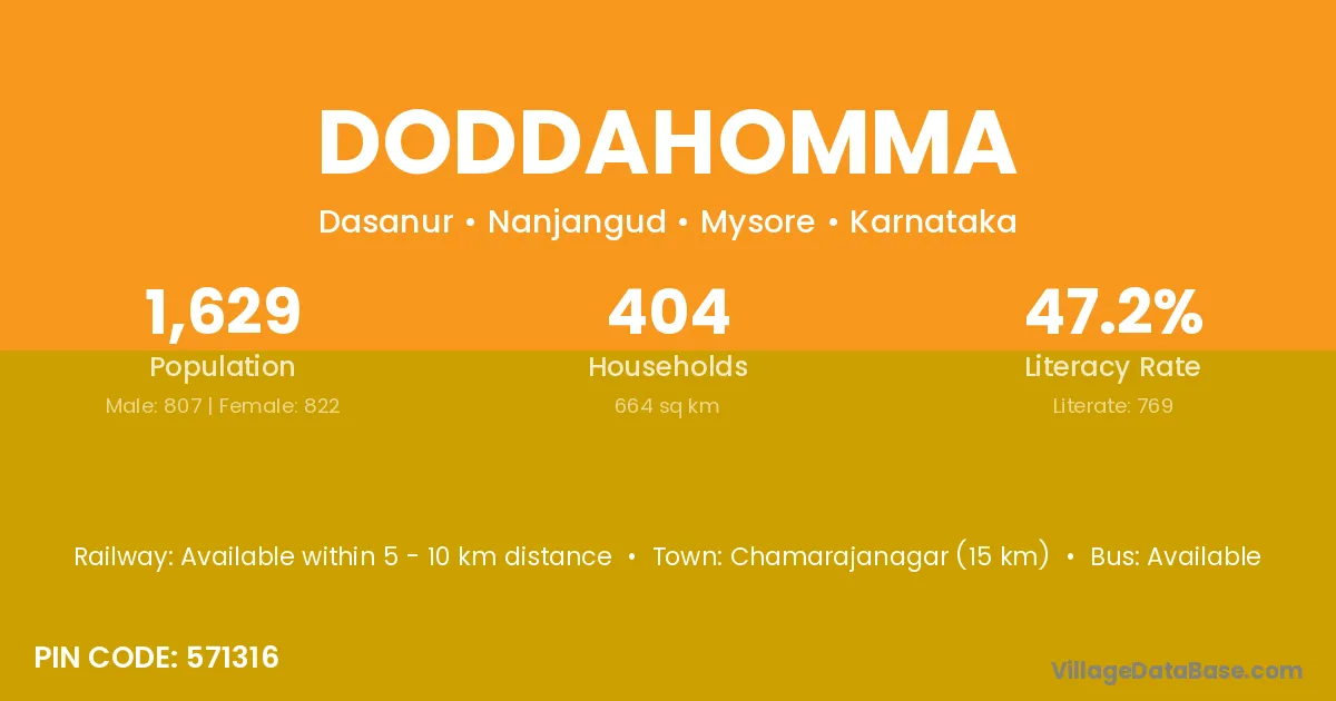 Chamarajanagar (15 km) is the nearest town to Doddahomma village for major economic activities and is located approximately 15 km away.