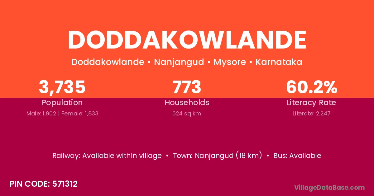 Nanjangud (18 km) is the nearest town to Doddakowlande village for major economic activities and is located approximately 18 km away.