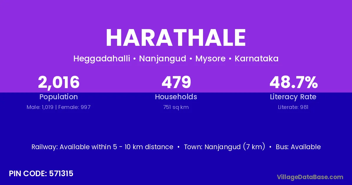 Nanjangud (7 km) is the nearest town to Harathale village for major economic activities and is located approximately 7 km away.
