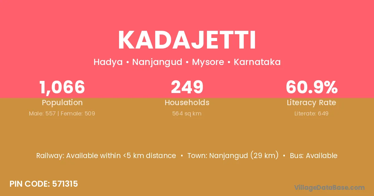 Nanjangud (29 km) is the nearest town to Kadajetti village for major economic activities and is located approximately 29 km away.