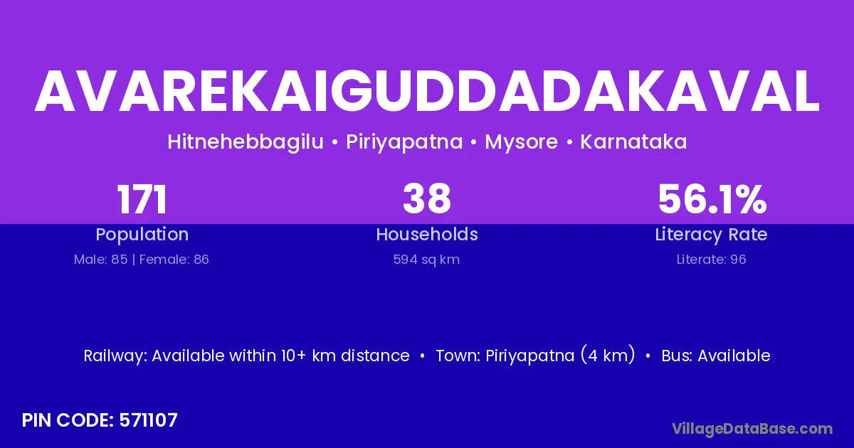 Piriyapatna (4 km) is the nearest town to Avarekaiguddadakaval village for major economic activities and is located approximately 4 km away.