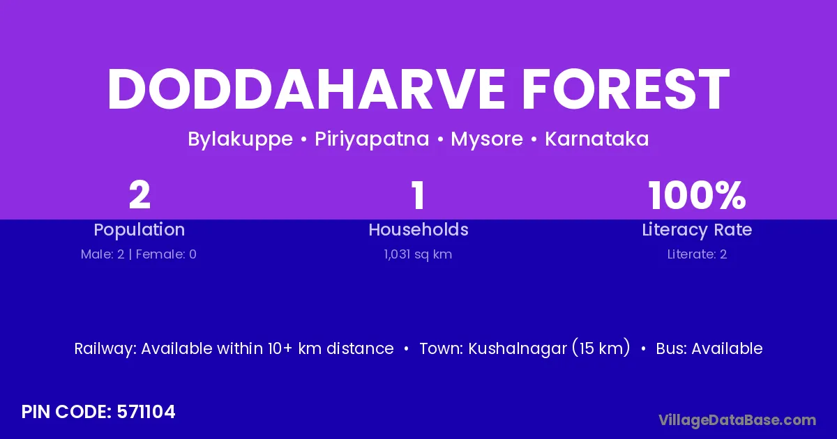 Kushalnagar (15 km) is the nearest town to Doddaharve Forest village for major economic activities and is located approximately 15 km away.