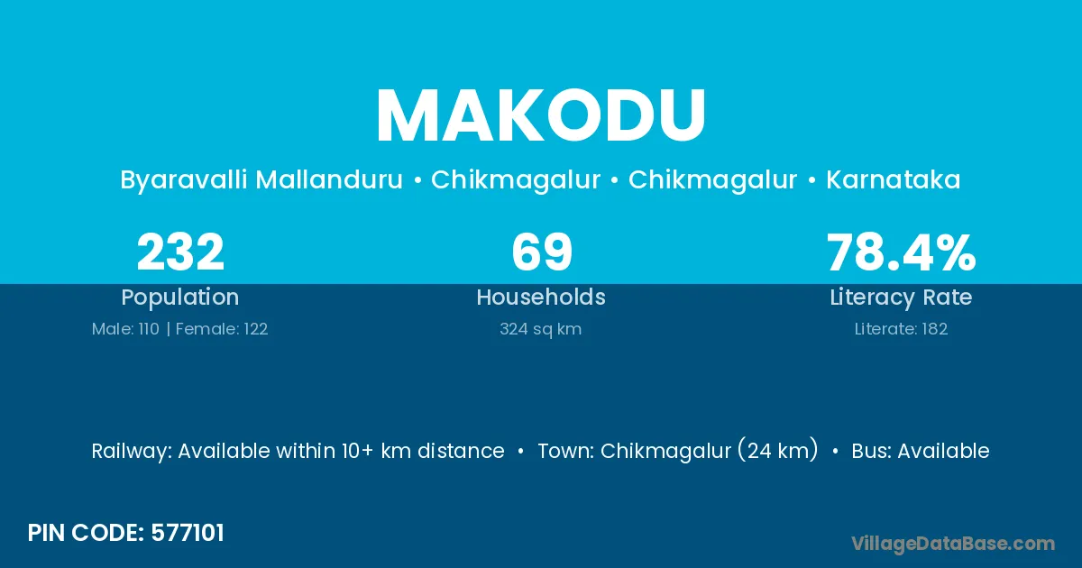 Piriyapatna (15 km) is the nearest town to Makodu village for major economic activities and is located approximately 15 km away.