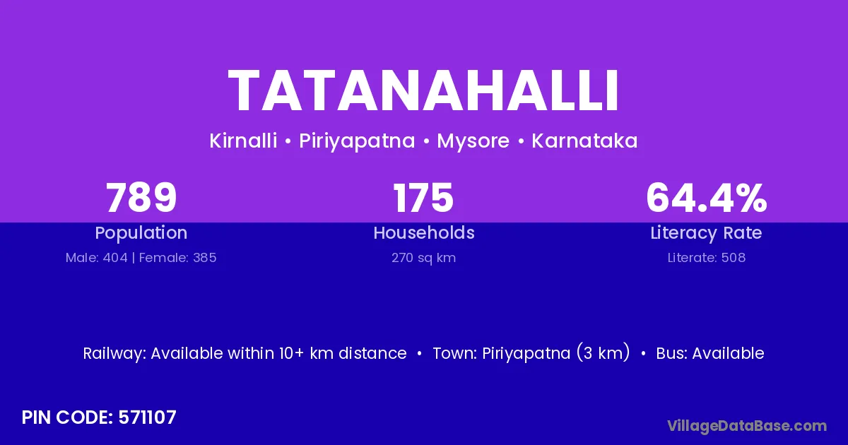 Piriyapatna (3 km) is the nearest town to Tatanahalli village for major economic activities and is located approximately 3 km away.