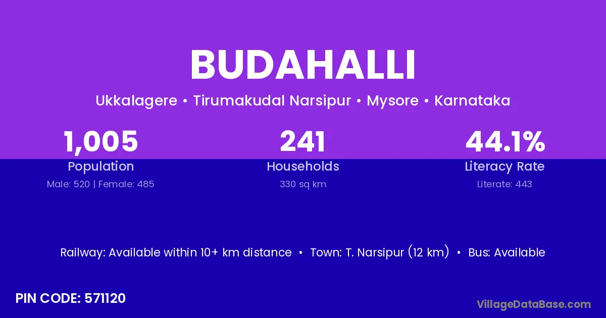Budahalli village has a total population of 1,005 people, of which 520 are males and 485 are females.