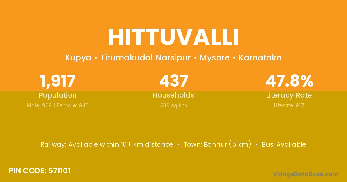 Bannur (5 km) is the nearest town to Hittuvalli village for major economic activities and is located approximately 5 km away.