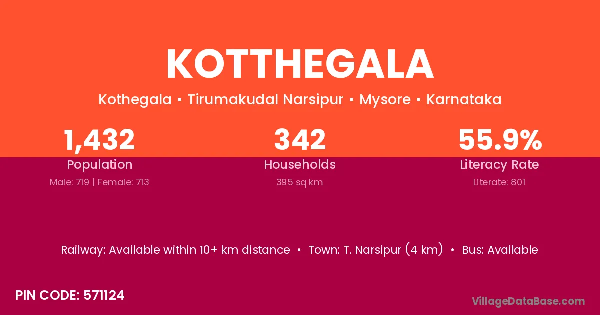 T. Narsipur (4 km) is the nearest town to Kotthegala village for major economic activities and is located approximately 4 km away.