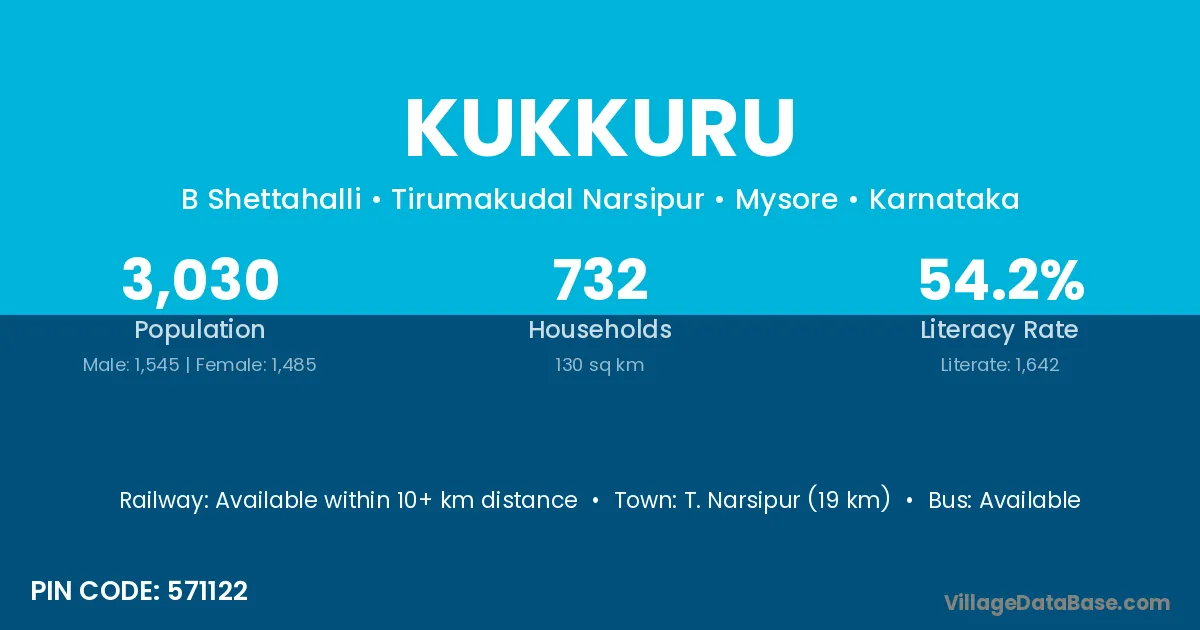 T. Narsipur (19 km) is the nearest town to Kukkuru village for major economic activities and is located approximately 19 km away.