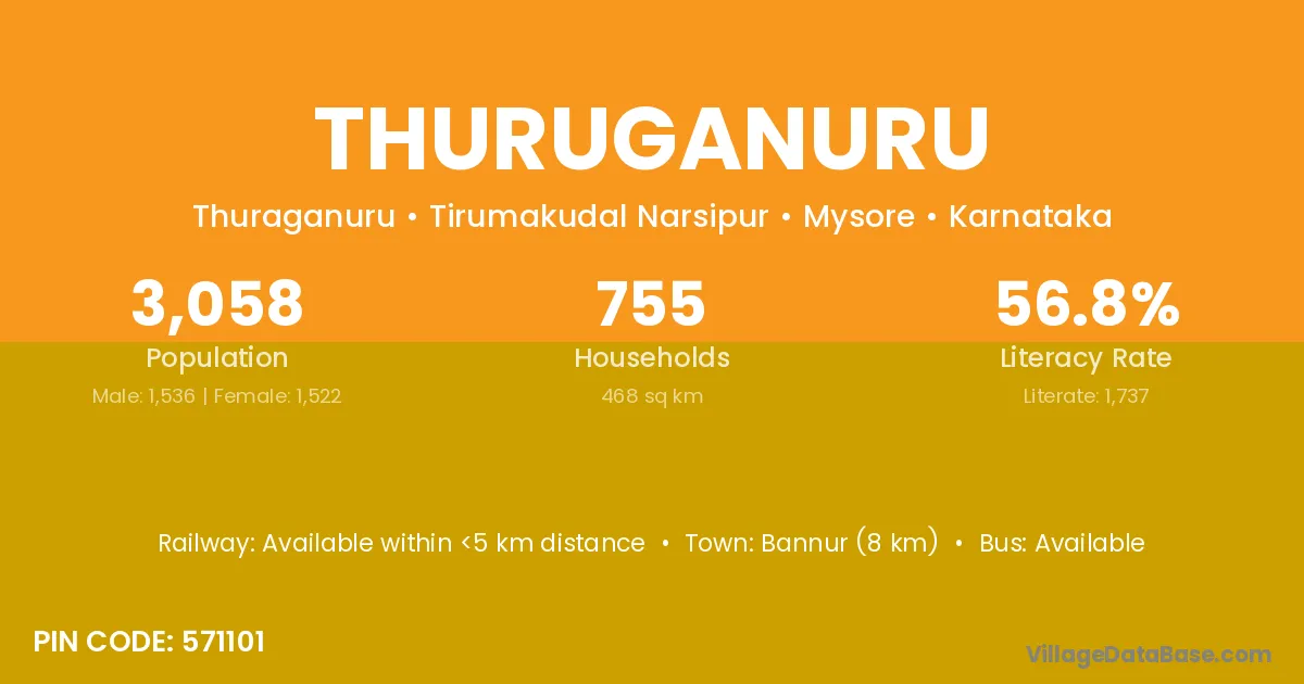 Bannur (8 km) is the nearest town to Thuruganuru village for major economic activities and is located approximately 8 km away.