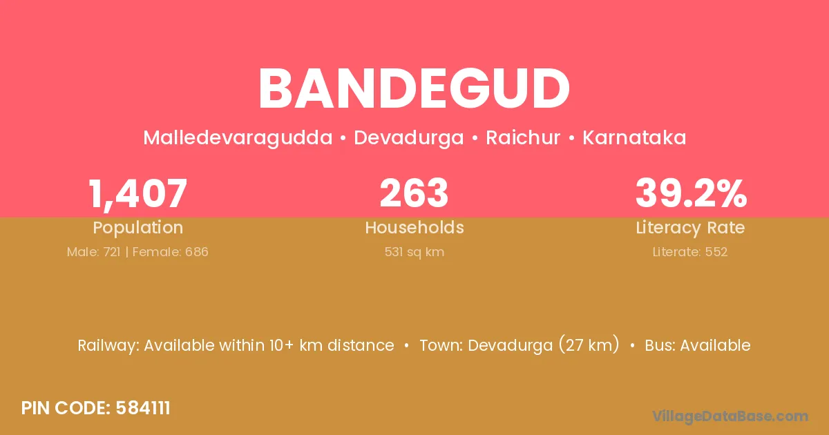 Devadurga (27 km) is the nearest town to Bandegud village for major economic activities and is located approximately 27 km away.