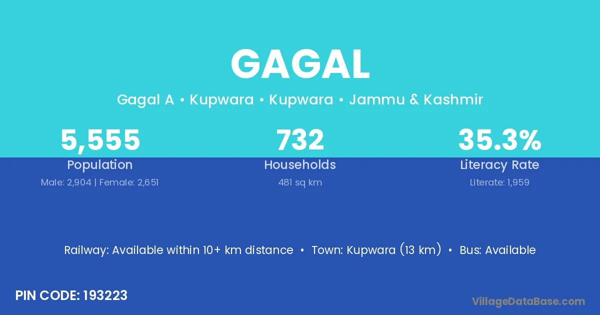 The literacy rate of Gagal village is 38.83%. Male literacy stands at 49.66% and female literacy at 28.75%.