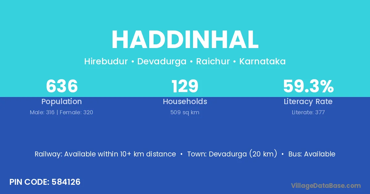 Devadurga (20 km) is the nearest town to Haddinhal village for major economic activities and is located approximately 20 km away.