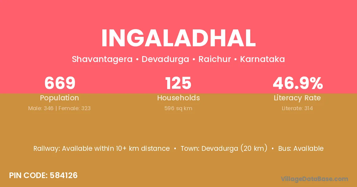 Devadurga (20 km) is the nearest town to Ingaladhal village for major economic activities and is located approximately 20 km away.