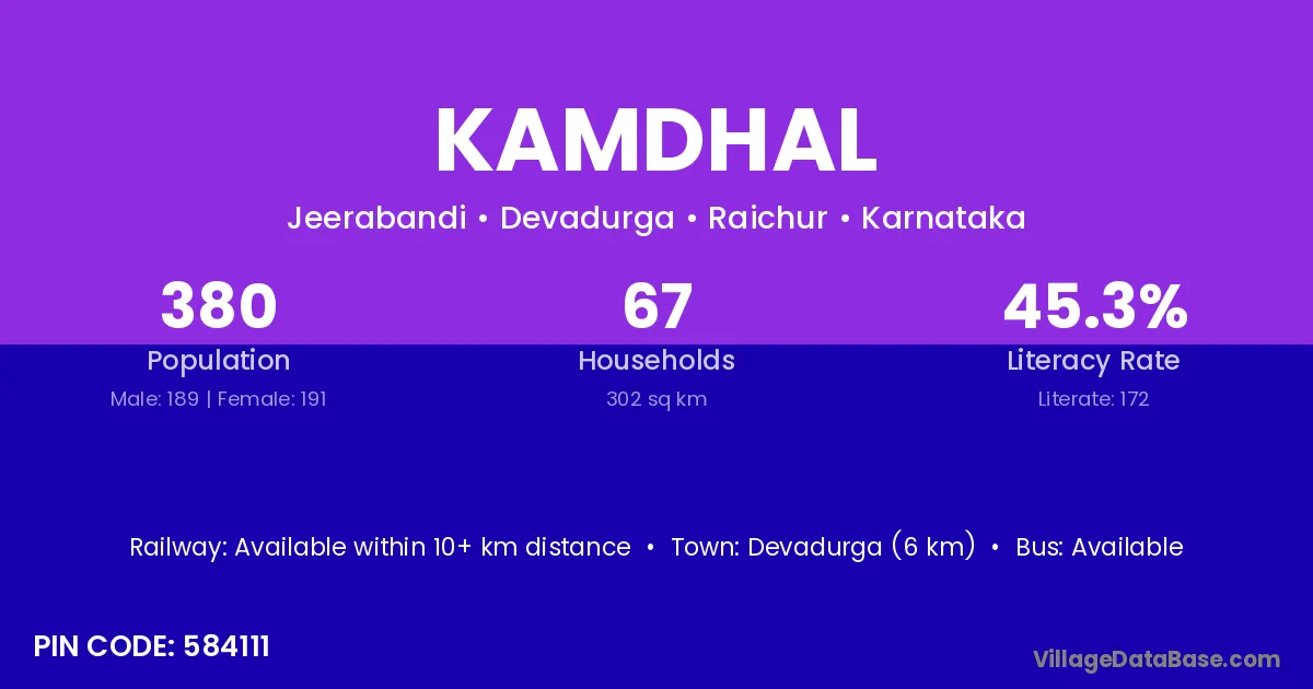 Devadurga (6 km) is the nearest town to Kamdhal village for major economic activities and is located approximately 6 km away.
