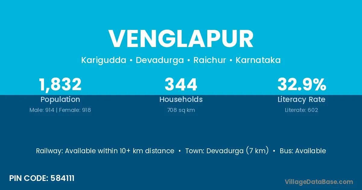 Devadurga (7 km) is the nearest town to Venglapur village for major economic activities and is located approximately 7 km away.