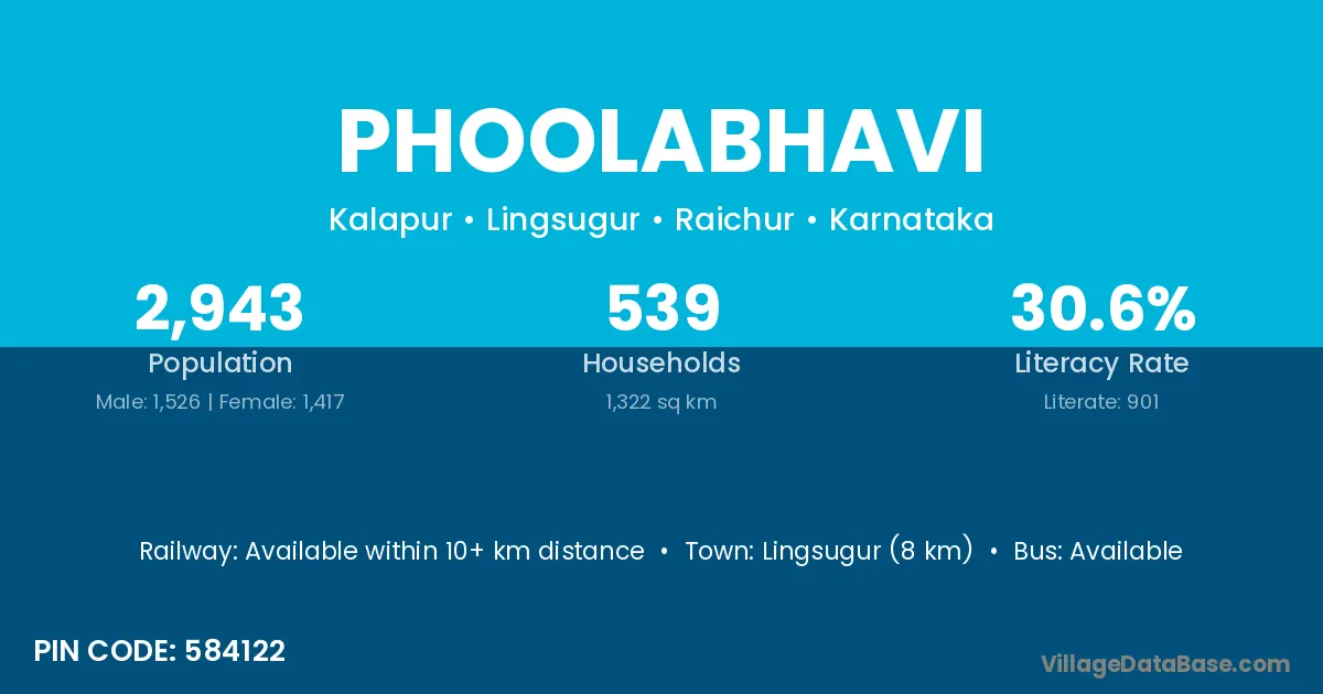Lingsugur (8 km) is the nearest town to Phoolabhavi village for major economic activities and is located approximately 8 km away.