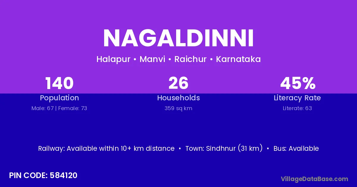 Sindhnur (31 km) is the nearest town to Nagaldinni village for major economic activities and is located approximately 31 km away.