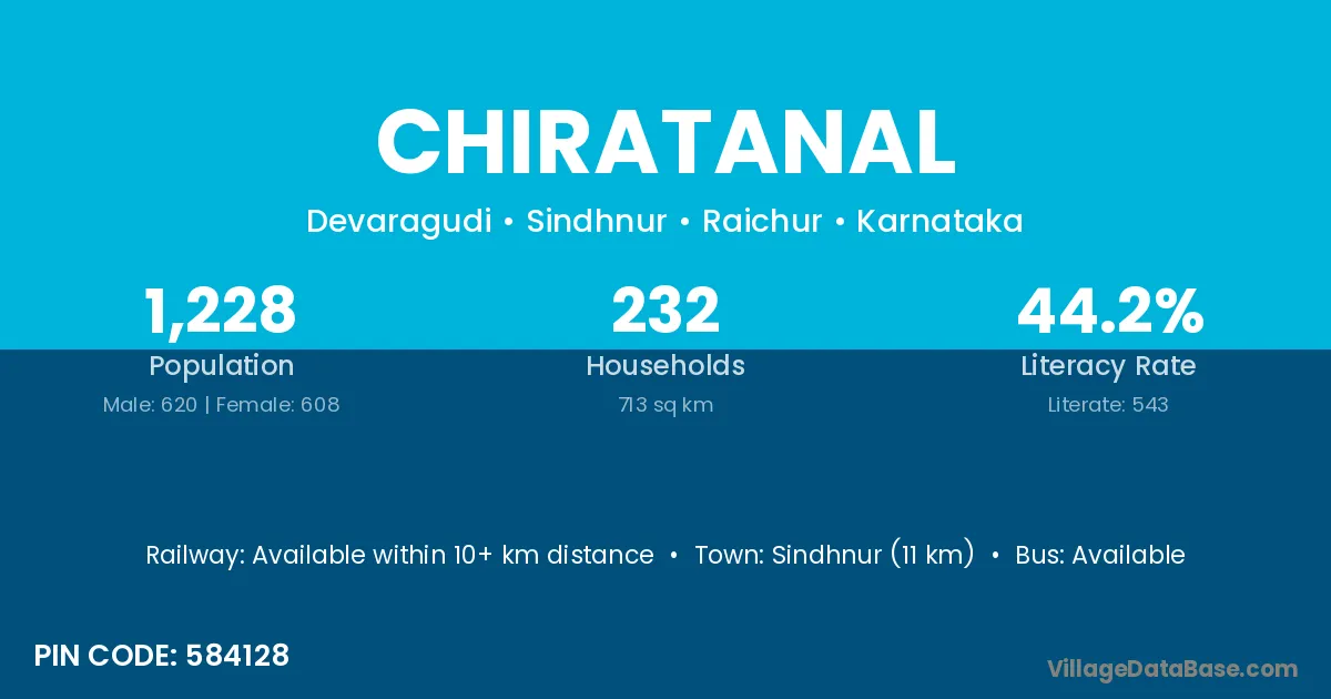 Sindhnur (11 km) is the nearest town to Chiratanal village for major economic activities and is located approximately 11 km away.