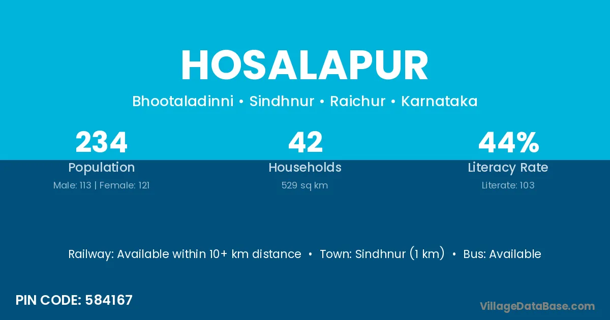 Sindhnur (1 km) is the nearest town to Hosalapur village for major economic activities and is located approximately 1 km away.