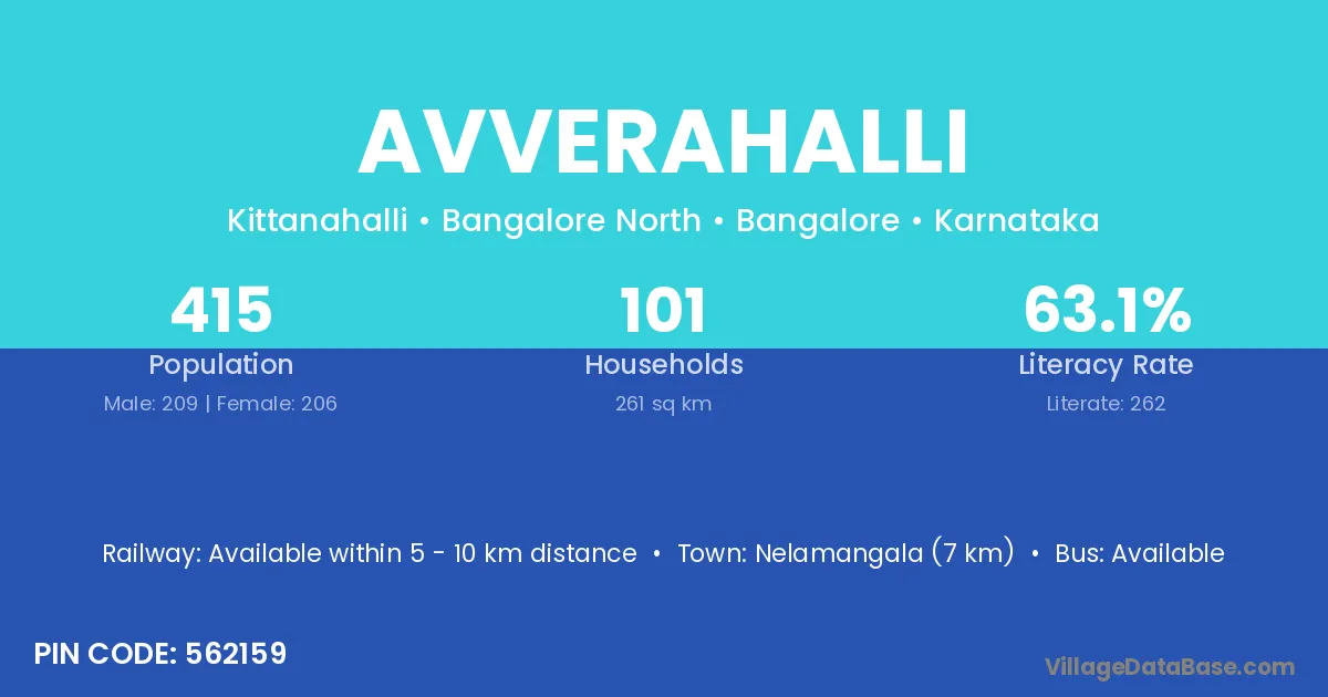 Channapatna (16 km) is the nearest town to Avverahalli village for major economic activities and is located approximately 16 km away.