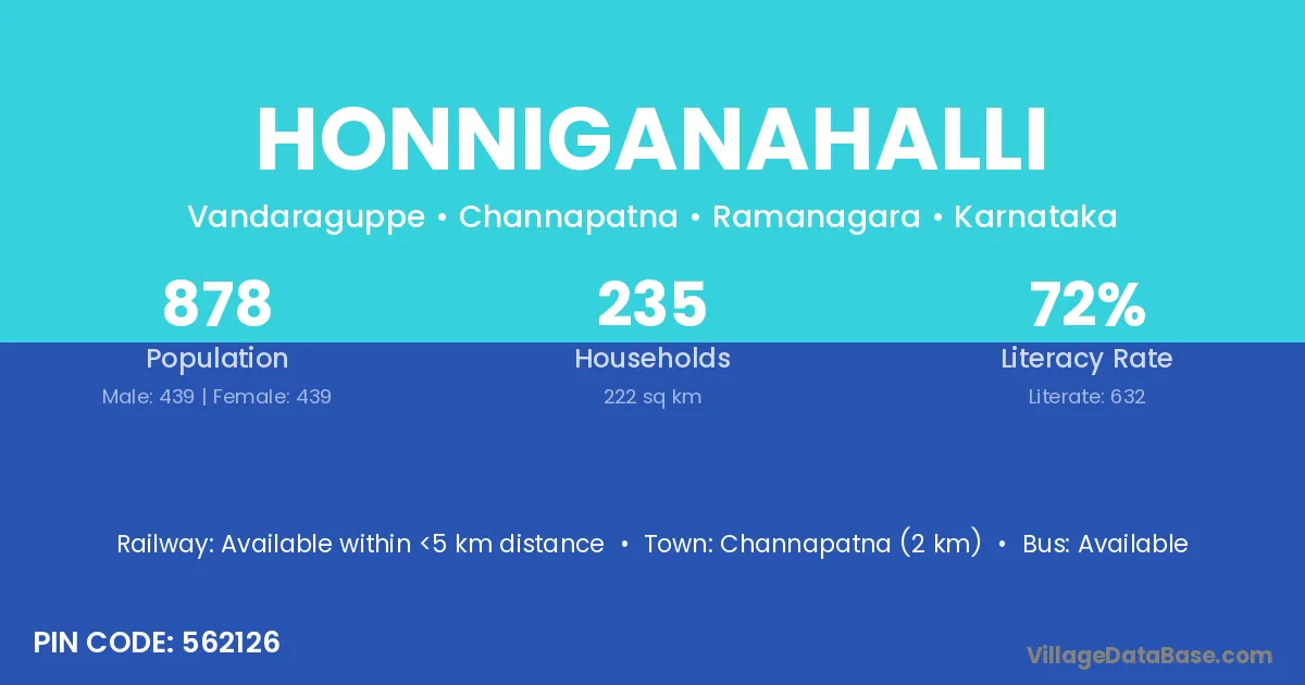 Channapatna (2 km) is the nearest town to Honniganahalli village for major economic activities and is located approximately 2 km away.