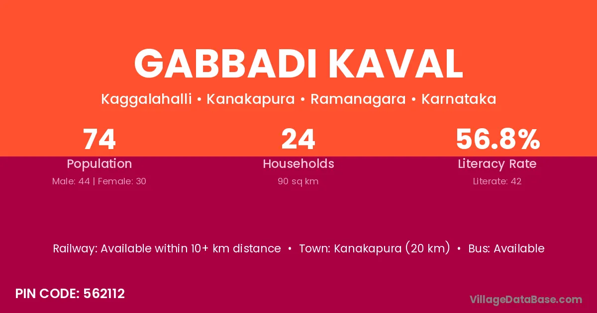 Kanakapura (20 km) is the nearest town to Gabbadi Kaval village for major economic activities and is located approximately 20 km away.