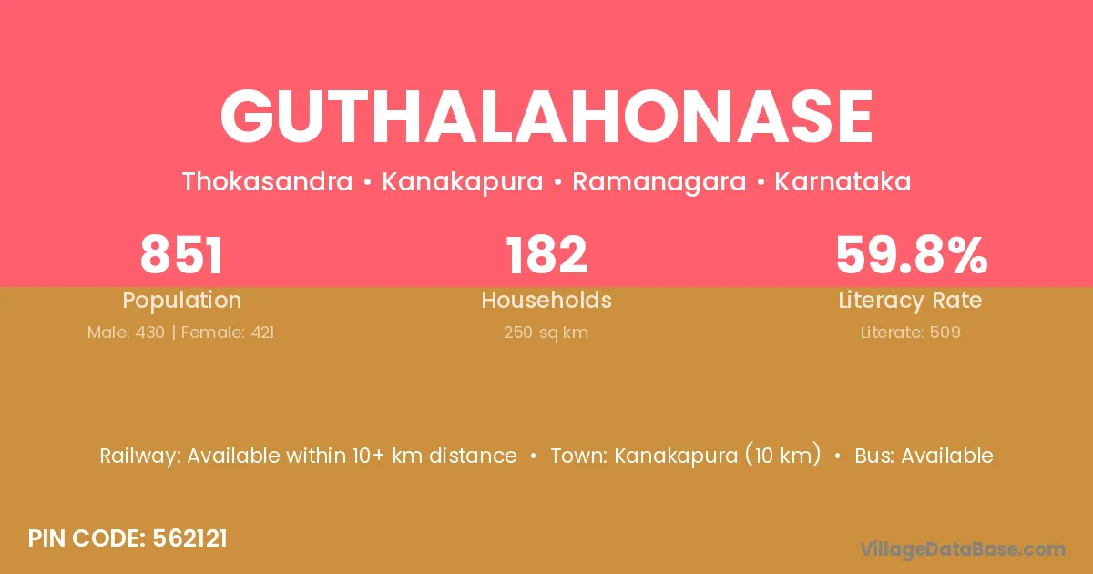 Kanakapura (10 km) is the nearest town to Guthalahonase village for major economic activities and is located approximately 10 km away.