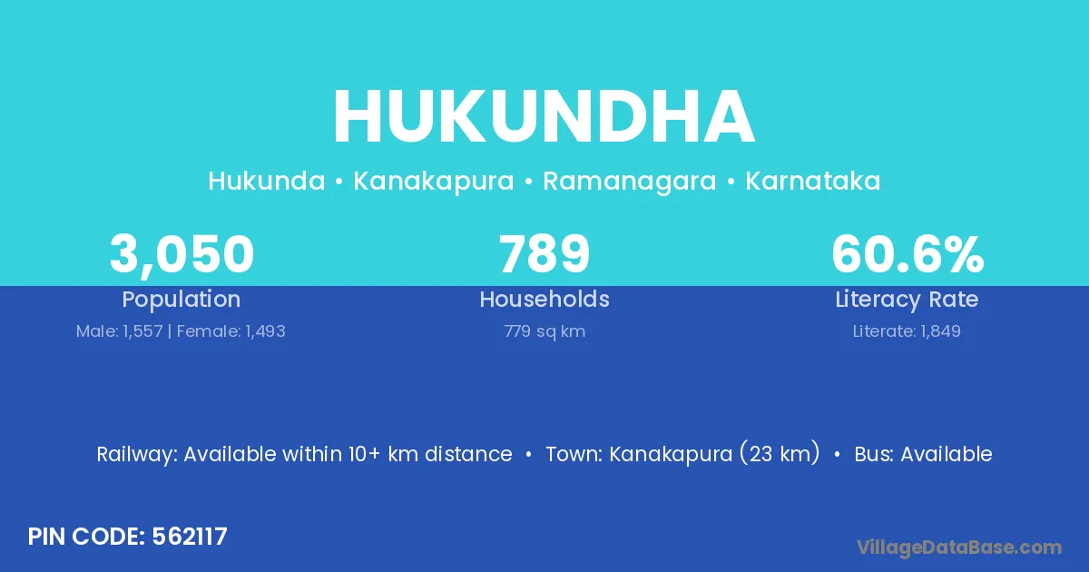 Kanakapura (23 km) is the nearest town to Hukundha village for major economic activities and is located approximately 23 km away.