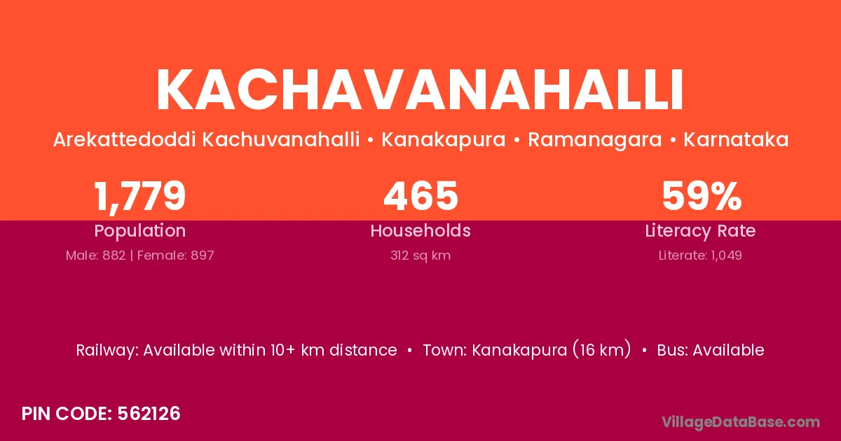 Kanakapura (16 km) is the nearest town to Kachavanahalli village for major economic activities and is located approximately 16 km away.