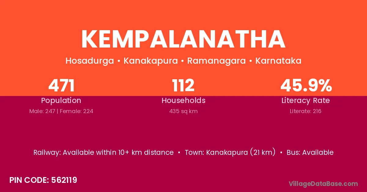 Kanakapura (21 km) is the nearest town to Kempalanatha village for major economic activities and is located approximately 21 km away.